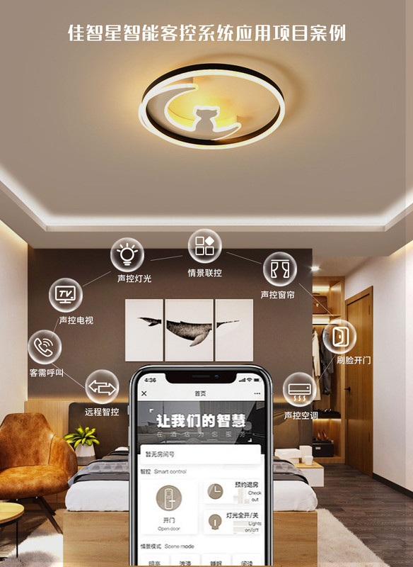 TAX型智慧酒店客控系統采用ARM高速微處理器,控制和管理的功能有、臺燈、房燈、落地燈、鏡前燈、空調、電視等強電控制,還有請清理、SOS呼叫、房間有無人檢測、房門關閉檢測等弱電控制;其中SOS呼叫、請清理、勿擾、客房溫度及空調風速、智慧酒店解決方案等客人服務信息能準確快速地傳遞到客房服務中心,多種場景控制方式和時間控制方式;可做多種接口與PMS對接。